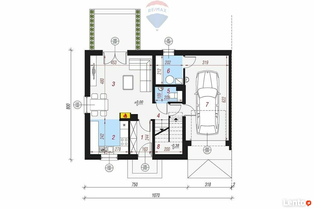 - Przestrzeń dzienną uzupełnia toaleta, a przez wiatrołap